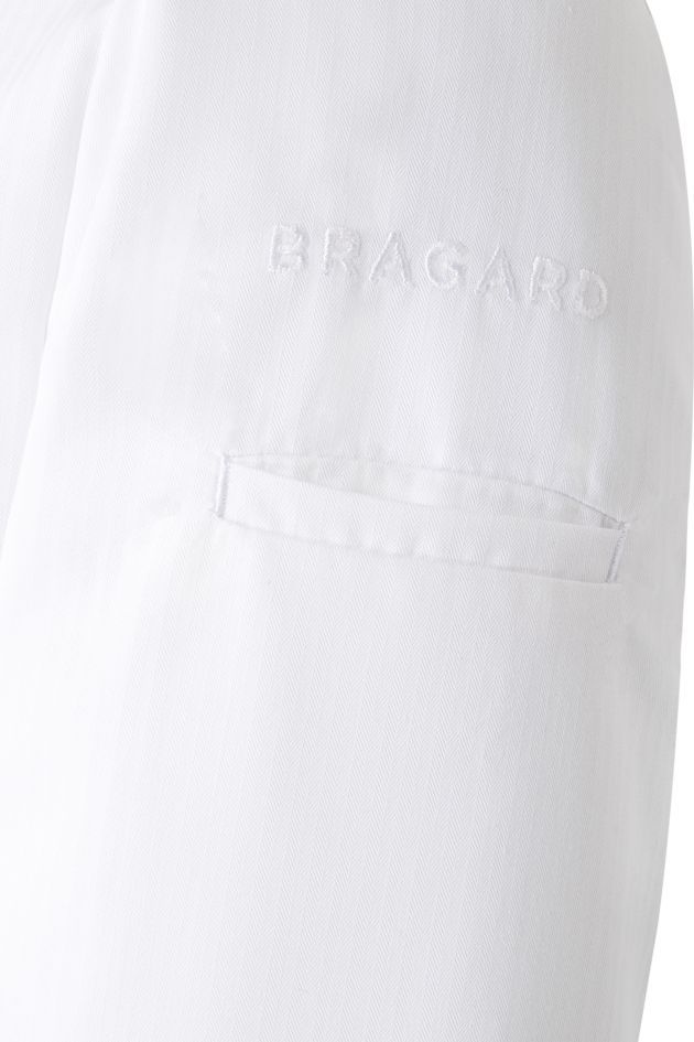 6) Tasca porta penna e ricamo Bragard sulla manica sinistra